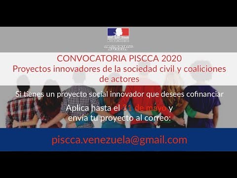 En el marco del apoyo del gobierno francés al Fortalecimiento de la sociedad venezolana frente a los desafíos de la crisis, la Embajada de Francia en Venezuela lanza la convocatoria PISCCA 2020 (proyectos innovadores de la sociedad civil y coaliciones de actores).